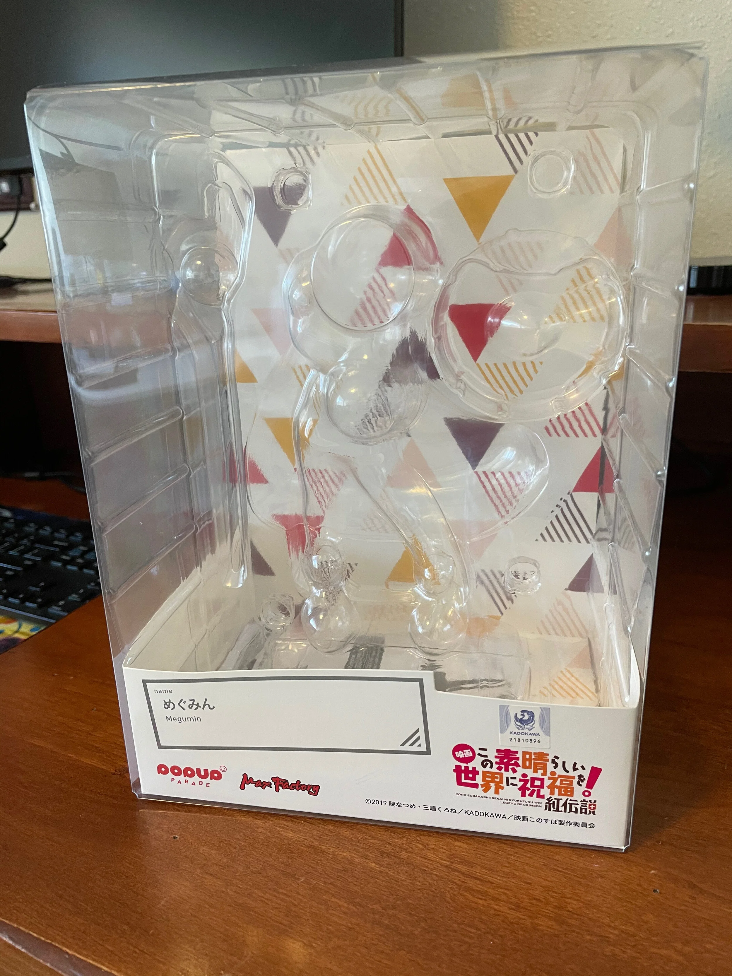 Now, there is nothing about this box that screams Megumin to me. Sure, the boring triangles in the background somewhat match her color scheme and her name is on it, but that doesn’t make me feel like this box belongs to this awesome character.